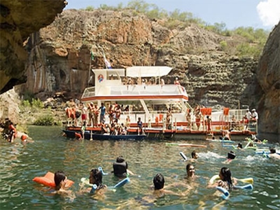 No meio das pedras quando a água do lago fica delimitada pelas rochas altas do lugar os turistas podem descer dos barcos e nadar com a ajuda de bóias. O contato mais próximo com as grandes piscinas naturais apresenta mais uma das qualidades da região. A areia que desprende das formações arenito e granito impregnam a água com um cheiro bom parecido com o do filtro de barro.